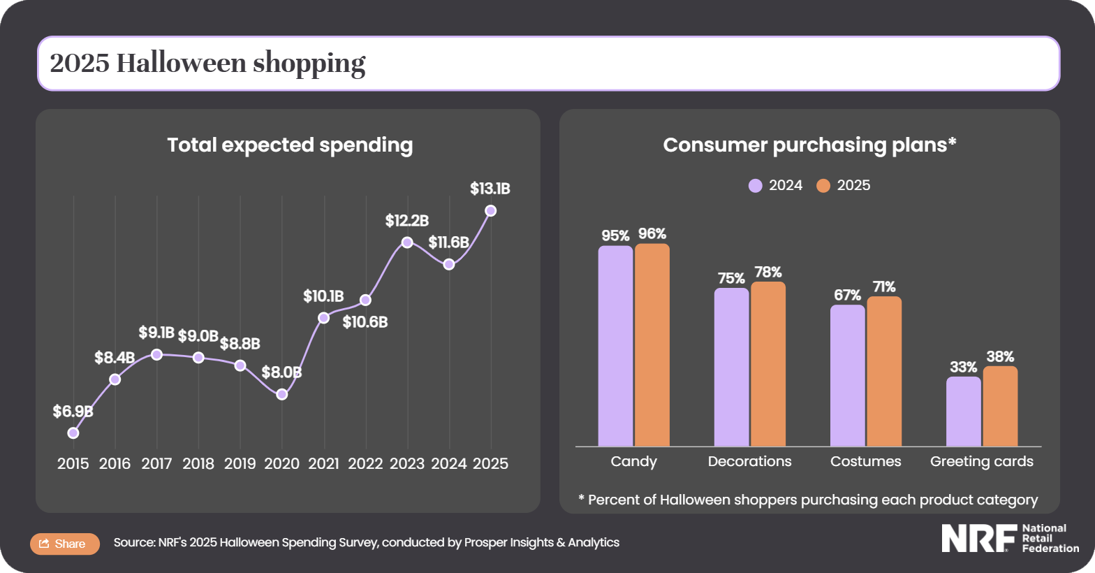 Caption: We spent ~2x more on Halloween in 2025 compared to 2015. Are we twice as happy and fulfilled? What does this spending reflect? Is this a sign of progress of a nation towards prosperity and wisdom? Or is this a sign of overconsumerism, loss of wisdom, and becoming slaves to media, corporations, and societal norms?